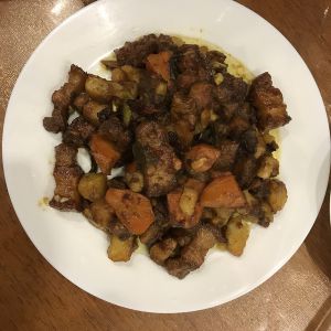 放土豆 胡萝卜翻炒一下 加适量开水 放点盐 炖大概20分钟吧