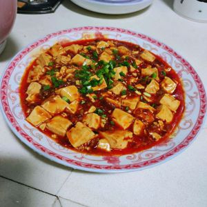 豆腐切小方块焯水备用,猪肉剁成肉沫,大蒜小米椒切沫备用