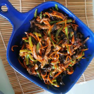 加入木耳继续翻炒(后加木耳是因为木耳到锅里回蹦)
