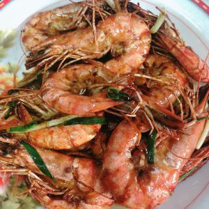 越南活冻黑虎虾洗干净,在虾头下面第二关节处用牙签挑出虾线,(虾开背更入味)准备葱段、姜丝、蒜片