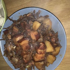 加入老抽 酱油 八角桂皮香叶 姜 葱头(家里没有大葱了 用葱头代替)炒香
