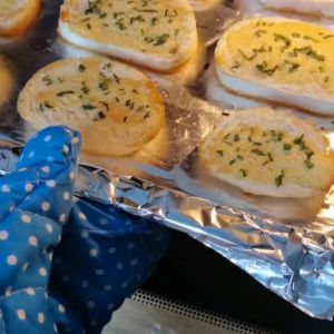 烤盘上铺上锡纸,锡纸上薄薄地涂抹一层食用油。然后把馒头片铺上去,均匀地刷上蛋液, 然后再撒上葱花。