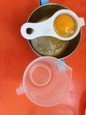 将鸡蛋用蛋清分离器把蛋清和蛋黄分开