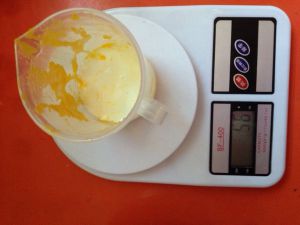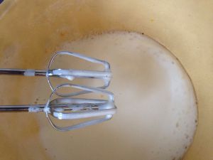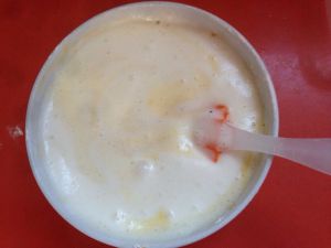 将9分三次加入到8中,搅拌均匀,注意不要画圈,要以直径搅拌,以免泡沫消失