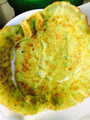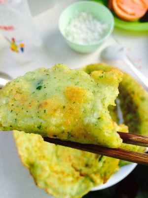 面粉,胡萝卜丝,青菜叶,洋葱全部切碎,加小半勺盐,搅拌成糊状~~下锅煎~~