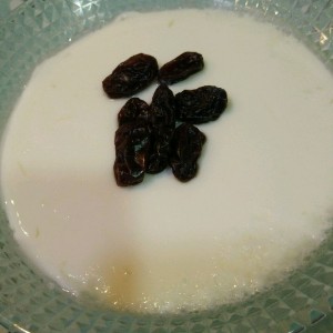放凉一点就可以吃了,放冰箱冷藏一下更好吃。我加了葡萄干点缀拍照,吃的时候多拌点。