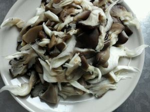 平菇掰成小瓣儿,用开水抄一下,捞出控水。