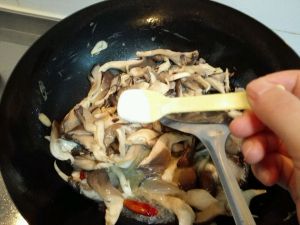 放平菇继续翻炒,根据口味加少许盐