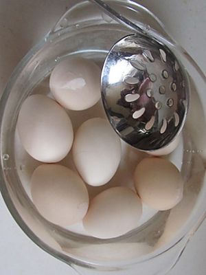 将鸡蛋捞出放入凉水内两分钟;