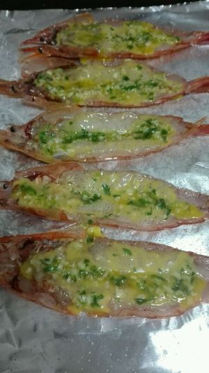 将拌好的黄油涂抹在虾上