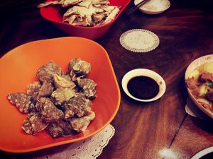 开锅5分钟后关火。吃的时候用筷子把它戳出来沾调好的辣根吃。(记住尾部黑色部分不能食用)