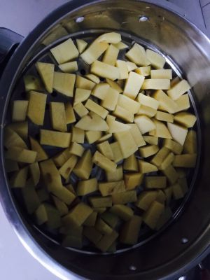 土豆切块,清洗后上锅蒸,二十分钟后出锅。