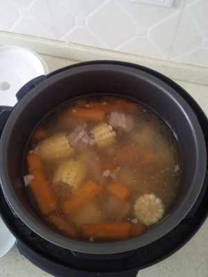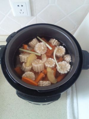 将排骨、玉米、胡萝卜放入电压力锅中,加入适量清水。