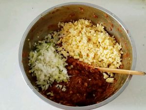 将西葫芦和调好的肉馅拌匀