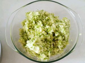 西葫芦切小丁,挤出部分水