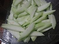 把瓜中间切开,然后斜到切成大小均衡的片儿。