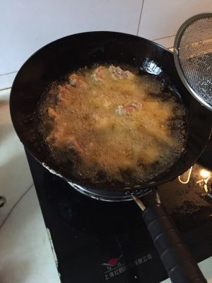 锅内加油,5成热时候,放入排骨,炸制定型后捞出来