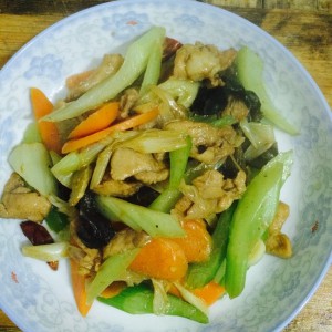 把切好的菜全部倒锅里,大火翻炒几下放盐和鸡精!就可以出锅了!