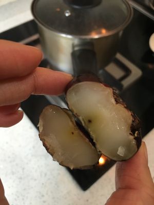 捞出一个荸荠,里面的肉也都变成半透明的。啃一个荸,喝一口无添加清纯水果羹,享受这个天然味。