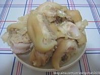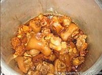 猪脚剁小块,洗净,淖去血水,再次洗净备用
