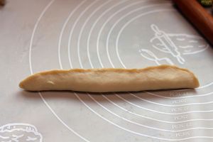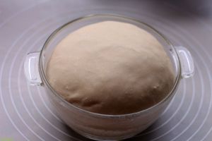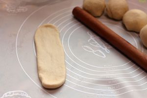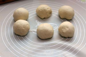面团分成六份,滚圆,盖保鲜膜排气15分钟;