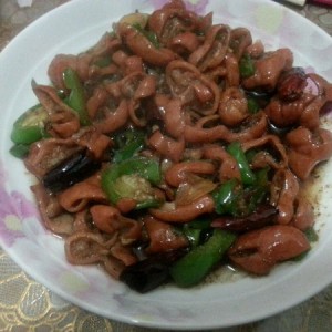 肥肠,尖椒,干红辣椒,葱,蒜全部切段