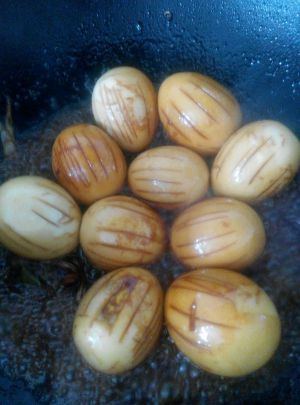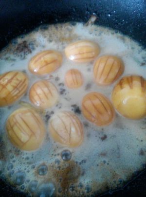 锅里放油加白糖炒到变色,出现小泡后放入鸡蛋,炒出糖色,再加酱油和其他调料。