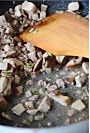一直翻炒至牛肉和香菇的汤汁留出(这步很关键)