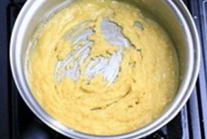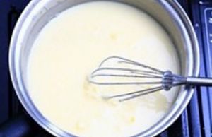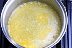 取出一个小锅,加10g黄油小火加热融化后,加入面粉炒香