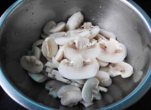 取一半的白蘑菇切片备用
