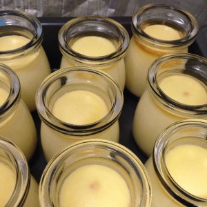 温牛奶中边打边慢慢倒入蛋液,然后过滤三遍(做出来更细腻)倒入杯子,烤箱预热后,放进装入盘子的布丁杯(座水一半左右)160度40分钟。