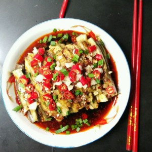 蒜小辣椒剁碎,和所有调料放在碗里,植物油烧八成热,倒进碗里