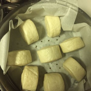放进蒸笼,发酵二十分钟,冷水开蒸,水开后改小火,等十五分后,关火,五分钟后再开盖