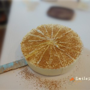 热毛巾敷模具边(或电吹风吹),用筛网撒层可可粉在表面。