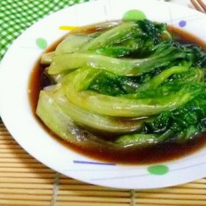 用油起锅,倒入生菜,翻炒约一分钟至熟软。
