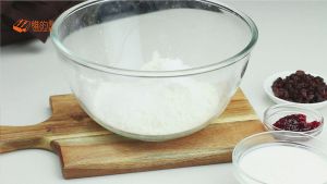 将准备好的食材,面粉、泡打粉及盐,放在容器混合搅拌;