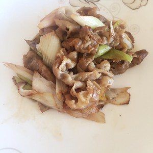 准备 大葱 和羊肉 把大葱切成斜块儿