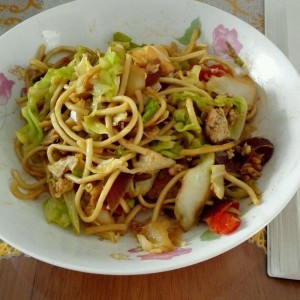 倒入蔬菜大火翻炒,别加水,使劲翻炒,然后倒入炒面,加入一点味极限上色,加入食盐完美出锅!