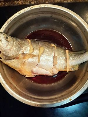 收拾好的黄花鱼先用姜,料酒,生抽腌1个小时