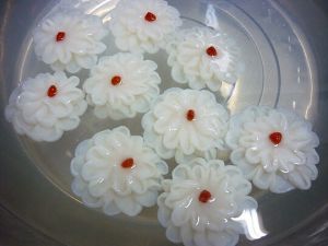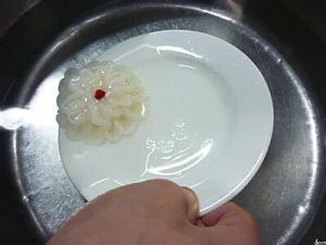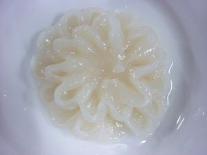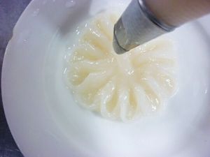 鱼肉制茸 加盐味精调味放入裱花袋中挤压成菊花造型