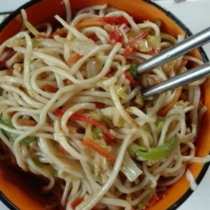 鸡蛋入锅炒好,出锅备用。锅中加油,放入青椒丝,包菜丝香菇丝胡萝卜丝翻炒,加调料,然后加入面条翻炒。最后加入鸡蛋。翻炒均匀,即可出锅。一碗香喷喷的炒面就做好了。我也是第一次做,放的食材也都是自己比较喜欢的。所以,有些食材如果你们不喜欢是可以不要的。最后说一句,不要放太多油了,太油了不好吃。