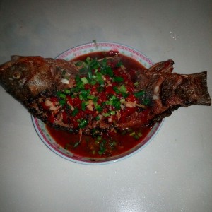 锅里留油把姜蒜剁椒放进去炒,炒出红油就加一碗水,把鱼也放进去盖好锅盖煮,记得多煮一会更好吃