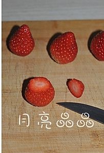 草莓洗净摘去蒂,用小刀在顶部往下三分之一处切开。