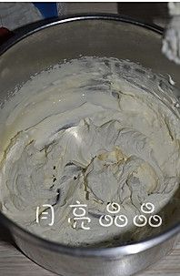 (此时淡奶油有明显纹路)。打发好的淡奶油装入裱花袋备用(用大号的裱花嘴)。