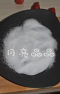 取一个大盘子,盘底撒一层白砂糖,营造出雪的场景。