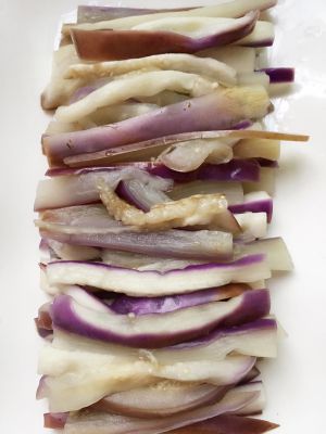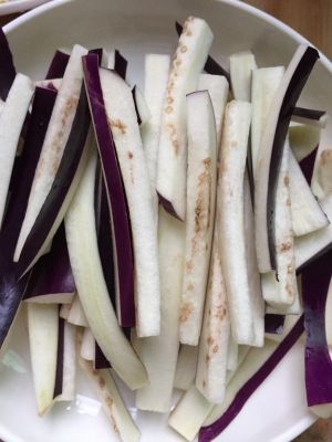 茄子切条,用水泡一下