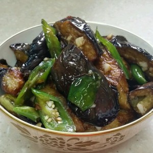 锅里放油(不用太多)煎茄子,想快大火,一面煎黄翻转(滚刀2或3面)剪好后捞出就可以了