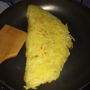 热锅少油 搅拌好的糊状倒入锅中 慢慢摊开