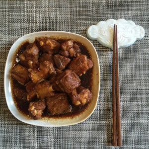 煸炒至排骨慢慢吸收了酱汁的颜色和味道