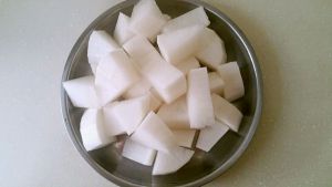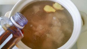 水开后,加入适量料酒,撇去浮末和杂质,加盖持续中小火30分钟